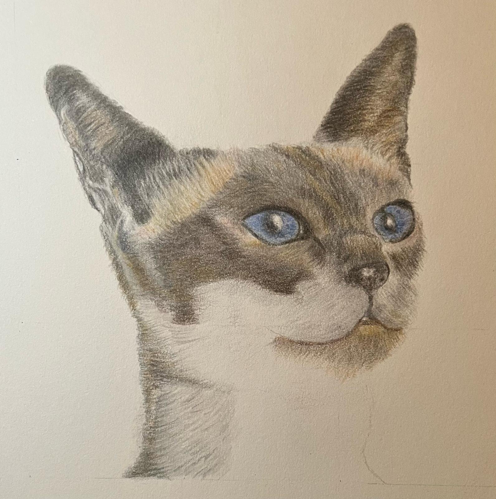 This is another tribute portrait of a stunning Blue Point Siamese boy who had a sweet and mischievous nature.